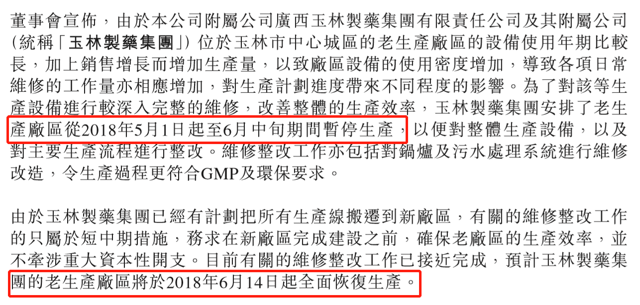 隨后,5月31日,遠(yuǎn)東宏信以8.55元/股的價(jià)格把手中的持股都清掉了,持股半年多回報(bào)近30%,很舒服了,所以那天股價(jià)放了天量大跌8.12%,但是基本還是撐住了。然而,幾天后,6月5日,上市公司公告工廠檢修事宜,從5月1日開(kāi)始停產(chǎn)檢修,預(yù)期到6月14日全面恢復(fù)生產(chǎn)。如果股東減持還只是股價(jià)問(wèn)題,那工廠檢修就是實(shí)打?qū)嵉挠绊憳I(yè)績(jī)了,即使考慮渠道庫(kù)存的因素,玉林1個(gè)月左右的營(yíng)收影響肯定是有。