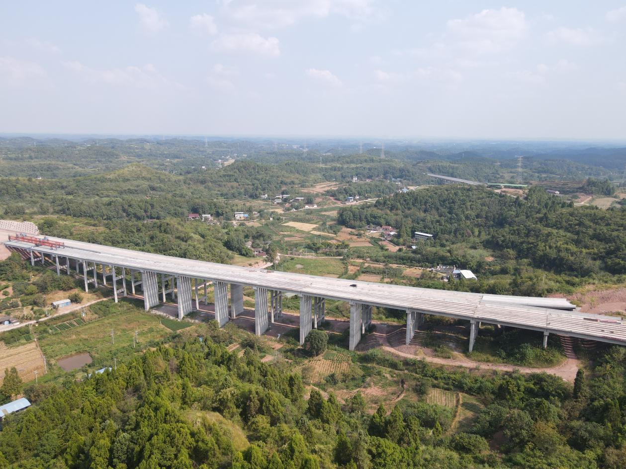 8月31日,四川分公司承建的梓州大道南延線項(xiàng)目D匝道橋架設(shè)完成。