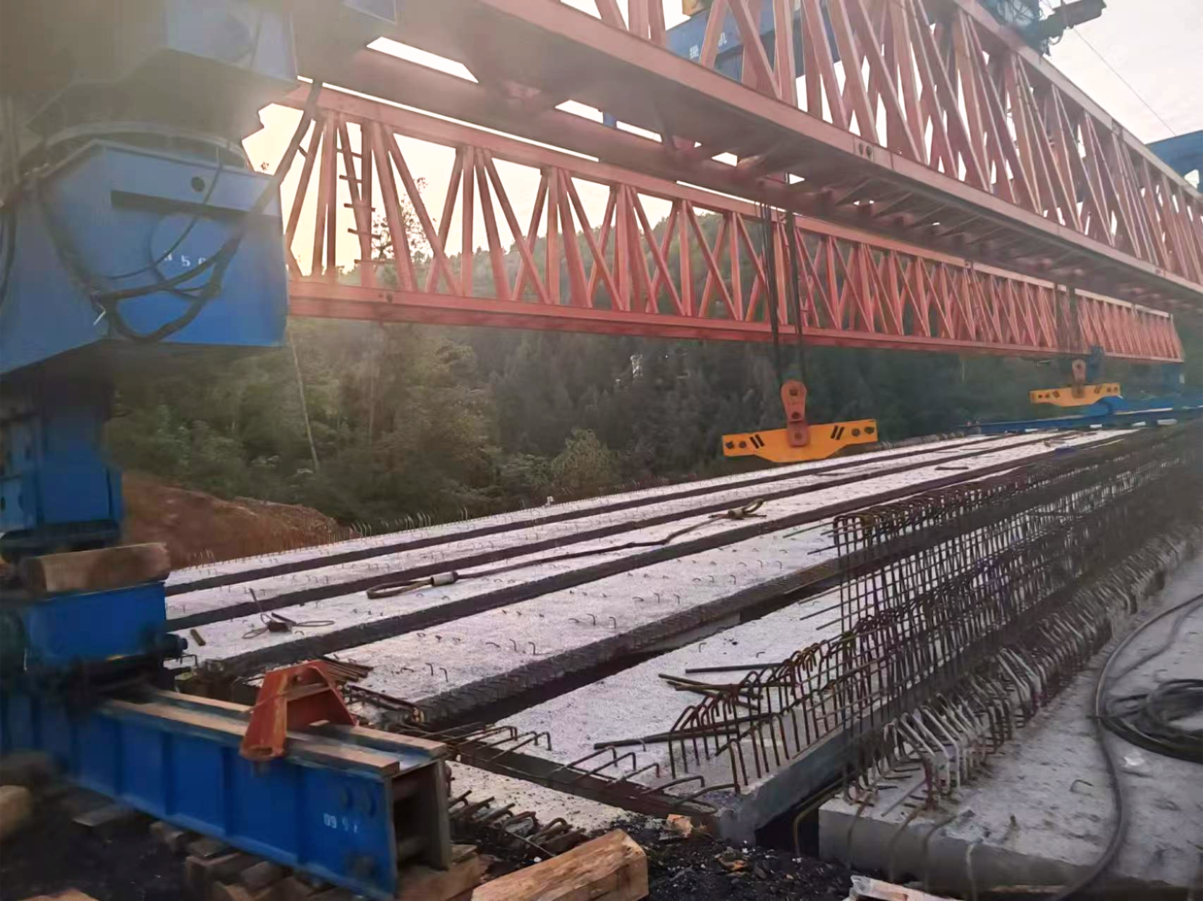 施工過程中,全橋共使用2臺架橋機(jī),4臺運梁車進(jìn)行施工。項目全線橋梁巖溶發(fā)育強(qiáng)烈,見溶率較高,橋區(qū)地質(zhì)情況復(fù)雜,歷時一個月,項目團(tuán)隊上下一心,通力協(xié)作,順利完成此次大橋T梁架設(shè)任務(wù),為全線早日通車夯實基礎(chǔ)。