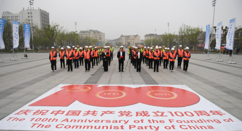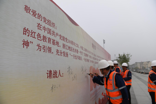 在學(xué)黨史、悟思想環(huán)節(jié)中,建設(shè)者們在中國二冶承建并完成的湖州市練市鎮(zhèn)振興廣場上重溫入黨誓詞,堅(jiān)定作為一名共產(chǎn)黨員的理想信念;向黨員突擊隊(duì)和青年突擊隊(duì)授旗,突擊隊(duì)代表表達(dá)了“堅(jiān)決聽黨指揮,踐行初心使命,認(rèn)真履職盡責(zé),勇于擔(dān)當(dāng)作為”的決心;在全體職工簽名的請戰(zhàn)書中,立下了“作為浙江湖州片區(qū)的建設(shè)者,承諾以開天辟地、敢為人先的紅船精神為引領(lǐng),充分發(fā)揚(yáng)‘一天也不耽誤,一天也不懈怠’ 的中冶精神,以高度的責(zé)任感和使命感踐行央企責(zé)任擔(dān)當(dāng),履行光榮使命。”的錚錚誓言。 活動(dòng)中,全體職工合唱《唱支山歌給黨聽》,用歌聲緬懷歷史、展望未來、傳承“紅船精神”,歌聲催人奮進(jìn),氣勢振奮人心。在大氣磅礴的歌聲和旋律中,感受到中國二冶職工對黨和國家的熱愛,感受到中華民族滄桑歷史,感受到二冶人昂揚(yáng)的斗志。在弘揚(yáng)愛國精神,重溫紅色經(jīng)典的同時(shí),號(hào)召大家把如火的熱情投入到工作中去,不忘初心,砥礪前行,以優(yōu)異的成績迎接中國共產(chǎn)黨成立100周年。