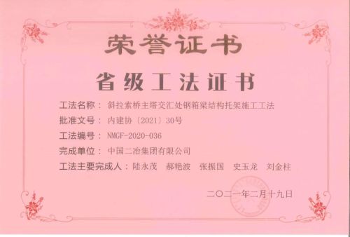 八項工法分別為市政分公司《靜態(tài)爆破施工工法》;鋼結(jié)構(gòu)公司《大跨度焊接球網(wǎng)架地面拼裝整體提升施工工法》;路橋分公司《斜拉橋主塔交匯處鋼箱梁結(jié)構(gòu)托架施工工法》;城建分公司《壓型鋼板非組合樓板施工工法》;管道分公司《管道深基坑支護綜合施工工法》;陜西分公司《單側(cè)支模條件下槽式預埋件安裝施工工法》;冶金分公司《高鐵站承軌鋼結(jié)構(gòu)制作施工工法》及《彩色印花機組活套設備安裝施工工法》。