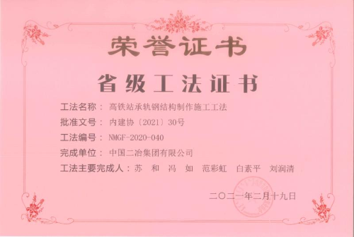 近日,中國二冶八項工法被內(nèi)蒙古建筑業(yè)協(xié)會評為省部級工法,公司工法成果數(shù)量再創(chuàng)新高。