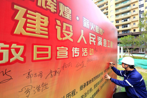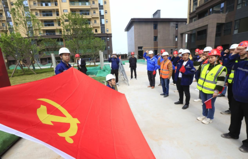 在辦實事、開新局環(huán)節(jié),項目全體黨員在黨旗下重溫入黨誓詞,表示要踐行長征精神,建設(shè)人民滿意工程,更加堅定作為一名共產(chǎn)黨員的理想信念;活動中,中國二冶黨群工作部向黨員突擊隊和青年突擊隊授旗,各方代表表達了“踐行初心使命,認真履職盡責(zé)”的決心;全體職工簽下請戰(zhàn)書,紛紛表示將繼續(xù)充分發(fā)揚“一天也不耽誤,一天也不懈怠”的中冶精神,以求真務(wù)實、開拓創(chuàng)新的精神,把全部力量凝聚到項目建設(shè)中來,向成都市人民交出一份滿意的答卷,隨后,各方代表圍繞安全環(huán)保、項目建設(shè)、工程質(zhì)量、工程進度等情況進行充分探討,對中國二冶董家埂社區(qū)工程的建設(shè)亮點進行深入了解。