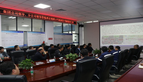 考察團(tuán)一行聽(tīng)取地鐵15號(hào)線項(xiàng)目部介紹