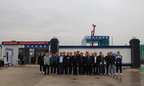 考察團(tuán)一行在地鐵項(xiàng)目部施工現(xiàn)場(chǎng)合影留念