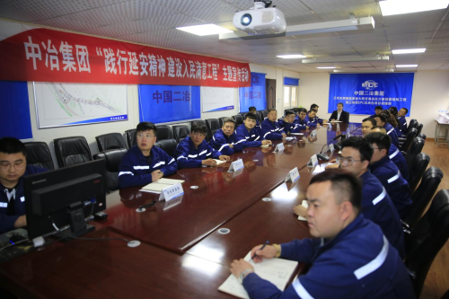 在學(xué)黨史、悟思想環(huán)節(jié),中國二冶建設(shè)者們在青年黨員代表的帶領(lǐng)下以鏗鏘之聲重溫入黨誓詞,表達(dá)了黨員們弘揚革命精神、傳承紅色基因的堅定決心;向黨員突擊隊和青年突擊隊授旗,突擊隊代表表達(dá)了“堅決聽黨指揮,踐行初心使命,認(rèn)真履職盡責(zé),勇于擔(dān)當(dāng)作為”的決心;路橋分公司黨委為該項目黨支部贈送黨史學(xué)習(xí)教育書籍,組織全體管理人員在“重溫延安精神 守初心擔(dān)使命”條幅上簽名請戰(zhàn),力爭通過學(xué)好黨史,引導(dǎo)廣大黨員用黨的奮斗歷程和偉大成就鼓舞斗志,用黨的光榮傳統(tǒng)和優(yōu)良作風(fēng)堅定信念,切實把學(xué)習(xí)成效轉(zhuǎn)化為精神動力,以優(yōu)異成績迎接建黨100周年。隨后,路橋分公司總經(jīng)理郝海飛結(jié)合實際,為全體黨員講述了一堂《讓延安精神在新時代綻放》主題黨課,集體觀看了《延安精神 永放光芒》專題片,黨員手寫承諾卡,使全體黨員干部及職工群眾進(jìn)一步深入學(xué)習(xí)領(lǐng)會“延安精神”的精髓要義。