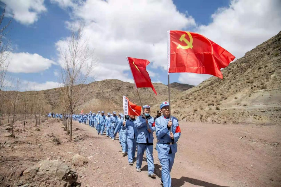 在大青山作戰(zhàn)司令部,大家面對黨旗和團(tuán)旗,莊嚴(yán)宣誓,在濃厚的儀式氛圍中,堅(jiān)定對黨忠誠的信念;在紀(jì)念館,一個(gè)個(gè)鮮活生動(dòng)、印象深刻的歷史人物與事件,使大家重溫歷史,牢記初心使命;在“行軍”路上,大風(fēng)陣陣,道路崎嶇,大家引吭高歌,一首首紅色歌曲,升華了對黨和國家的深厚情感;在終點(diǎn)順利“會師”,感受歷經(jīng)磨難后勝利的喜悅。