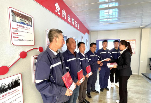 在學黨史、悟思想環(huán)節(jié),新型建筑分公司副總經(jīng)理帶領大家學習《弘揚西柏坡精神》,觀看西柏坡教育視頻,舉行授旗儀式,并在黨旗下重溫入黨誓詞。通過分享西柏坡的故事、贈送《西柏坡精神》等學習書籍,用革命先烈們堅韌不拔、無私奉獻的精神鼓舞大家堅守初心使命,展示了項目部在工程建設中積極發(fā)揮黨支部戰(zhàn)斗堡壘作用,引導廣大黨員干部做到學史明理、學史增信、學史崇德、學史力行,激勵黨員干部深耕細作、精細管理,在黨史學習教育中立足本職工作,把紅色教育的收獲轉(zhuǎn)化為扎實做好本職工作的動力。