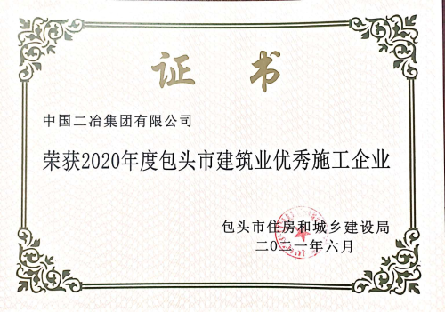 中國二冶榮獲“2020年度包頭市建筑業(yè)優(yōu)秀施工企業(yè)”等多項榮譽稱號