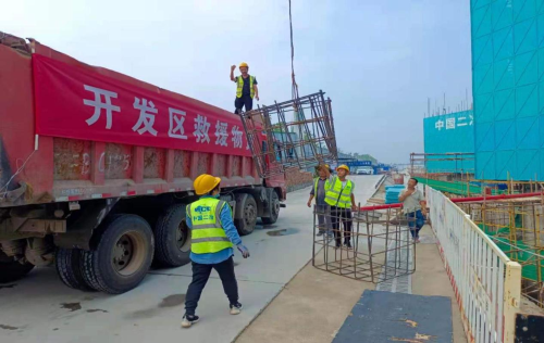 在這緊要關(guān)頭,中國二冶集團(tuán)鶴壁項(xiàng)目部首當(dāng)其沖,積極響應(yīng)政府號召,迅速投入到落實(shí)防洪救災(zāi)工作,踐行央企社會責(zé)任。但持續(xù)強(qiáng)降雨也使得鶴壁項(xiàng)目部施工現(xiàn)場受災(zāi)嚴(yán)重,基坑被淹、機(jī)械設(shè)備被泡均無法使用,項(xiàng)目部當(dāng)機(jī)立斷購置支援所需的焊機(jī)、切割機(jī)等機(jī)具,克服種種困難第一時間組織工人制作鋼筋籠,為抗洪一線送去援助。