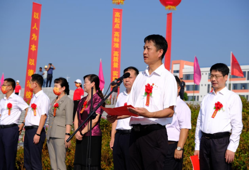 劉朝暉在致辭中首先代表縣委、縣人大、縣政府、縣政協(xié),向夜以繼日奮戰(zhàn)的中國(guó)二冶施工人員、項(xiàng)目指揮部工作人員和承建單位表示衷心感謝!廣大建設(shè)者克服了重重困難,歷經(jīng)了千辛萬(wàn)苦,全體參與項(xiàng)目建設(shè)的同志們發(fā)揚(yáng)“三牛”精神,吃苦耐勞,攻堅(jiān)克難,奮戰(zhàn)1300多個(gè)日日夜夜,終于建成了一座占地400畝、學(xué)位6000個(gè)的現(xiàn)代化新高中,向全縣人民兌現(xiàn)了莊嚴(yán)承諾,也讓70萬(wàn)永興人民充分感受到縣委縣政府致力于改善民本民生的堅(jiān)定決心。他強(qiáng)調(diào),優(yōu)質(zhì)教育質(zhì)量的均衡發(fā)展一直是困擾當(dāng)?shù)乜h鄉(xiāng)兩級(jí)教育事業(yè)發(fā)展的一個(gè)難題。今天新校區(qū)的揭牌意味著永興一中即將揚(yáng)帆遠(yuǎn)航,永興一中要以揭牌和開(kāi)學(xué)為新起點(diǎn),瞄準(zhǔn)高標(biāo)準(zhǔn),高質(zhì)量,高品位目標(biāo),提高教育質(zhì)量,辦出教育品牌,努力把學(xué)校創(chuàng)辦成管理一流,特色鮮明的義務(wù)教育標(biāo)桿學(xué)校。