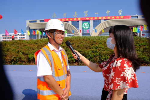 在揭牌儀式后,中國(guó)二冶永興一中項(xiàng)目經(jīng)理王海洋接受了當(dāng)?shù)孛襟w記者的采訪。他指出,中國(guó)二冶項(xiàng)目部面對(duì)工程時(shí)間緊,任務(wù)重,難度大等嚴(yán)峻形勢(shì),在中國(guó)二冶的正確領(lǐng)導(dǎo)下,在相關(guān)職能部門的鼎力支持,通力合作下,克服了疫情及雨天和惡劣天氣帶來(lái)的不利影響,充分發(fā)揚(yáng)了“堅(jiān)韌不拔,勇攀高峰”的企業(yè)精神,精心組織,日夜奮戰(zhàn),搶工趕工,為永興一中的如期開(kāi)學(xué)做了大量卓有成效的工作,彰顯了央企的責(zé)任擔(dān)當(dāng),確保了工程的按期履約,同時(shí)也得到了當(dāng)?shù)乜h委縣政府和當(dāng)?shù)乩习傩盏母叨仍u(píng)價(jià)。