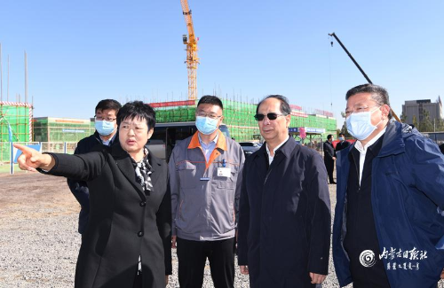 石泰峰走進(jìn)大地熊建設(shè)工地施工現(xiàn)場(chǎng),映入眼簾的就是如火如荼的建設(shè)場(chǎng)景,一棟棟廠房拔地而起,象征著包頭的經(jīng)濟(jì)也將迎來騰飛。