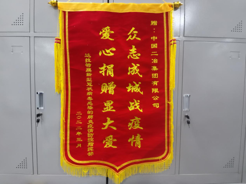 3月18日,中國(guó)二冶收到達(dá)拉特旗新型冠狀病毒感染的肺炎疫情防控指揮部送來(lái)的錦旗和感謝信,對(duì)中國(guó)二冶慷慨解囊,籌集醫(yī)療物資支援達(dá)旗疫情防控一線(xiàn)表示感謝。
