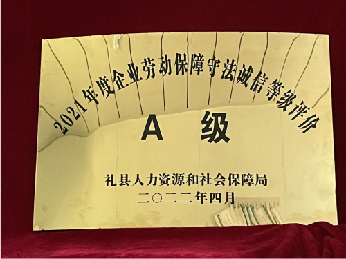 勞動保障守法誠信等級評價主要是對企業(yè)遵守勞動保障法律、法規(guī)及規(guī)章制度,履行守法誠信義務方面的專項評價。此次評價由隴南市禮縣人力資源和社會保障局組織實施,通過多輪實地考察與綜合評價,景禮項目部最終被認定為“2021年度企業(yè)勞動保障守法誠信等級評價A級企業(yè)”。
