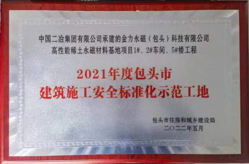在2021年度包頭市建筑施工安全標(biāo)準(zhǔn)化示范工地評選活動中,中國二冶金力永磁(包頭)科技有限公司高性能稀土永磁材料基地項目1#、2#車間、5#樓工程,水泊東岸項目1#-10#住宅樓、社區(qū)綜合用房、地下車庫等項目榜上有名,為守護包頭市天更藍、水更清、地更綠盡顯央企擔(dān)當(dāng)。