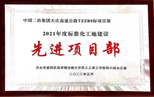 8月10日,中國二冶天莊高速公路項(xiàng)目部榮獲“天水市麥積區(qū)2021年度標(biāo)準(zhǔn)化工地建設(shè)先進(jìn)項(xiàng)目部”榮譽(yù)。
