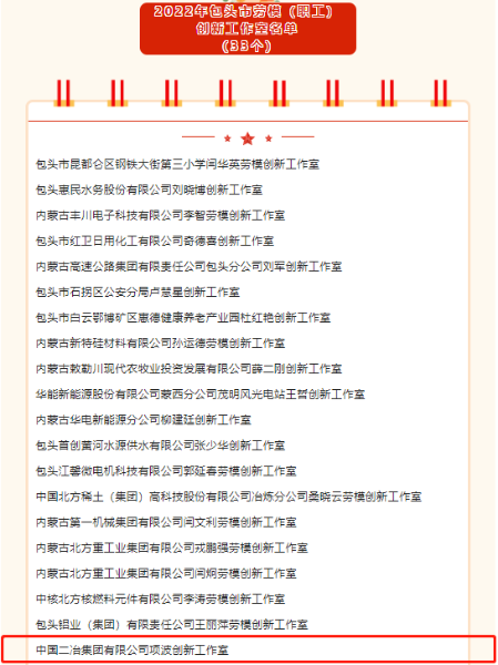 11月2日,在包頭市總工會2022年度勞模(職工)創(chuàng)新工作室評選中,中國二冶集團有限公司項波創(chuàng)新工作室榜上有名。