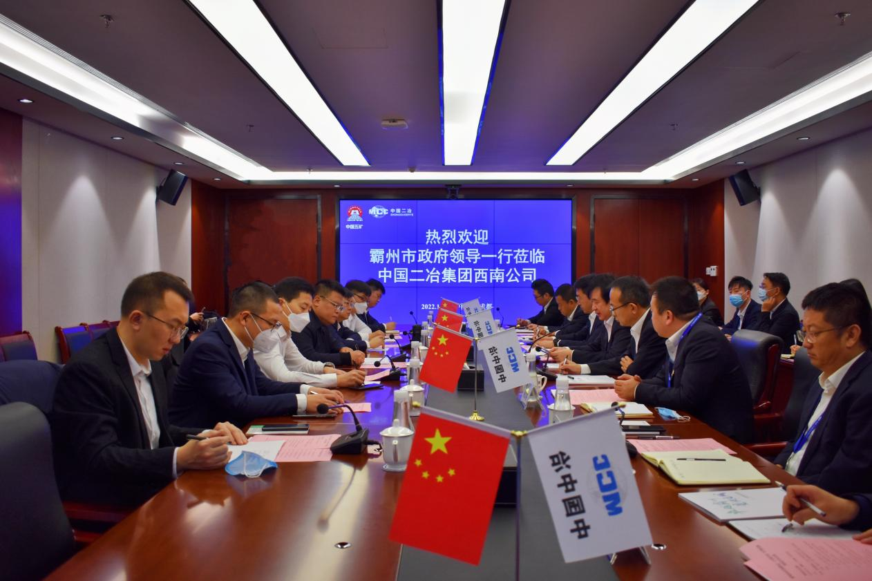 霸州經(jīng)濟開發(fā)區(qū)黨工委副書記韓楷,霸州市政府辦公室主任張亞軍,霸州市政府經(jīng)濟金融研究中心主任張策,霸州經(jīng)濟開發(fā)區(qū)招商局局長馬志興,霸州經(jīng)濟開發(fā)區(qū)招商局副局長趙立綱、李志煒;中國二冶總經(jīng)理助理張建強,公司副總經(jīng)濟師、西南分公司總經(jīng)理鮑文明,西南分公司黨委書記劉喆、總會計師劉虎慶、副總經(jīng)理張鐵參加會談。