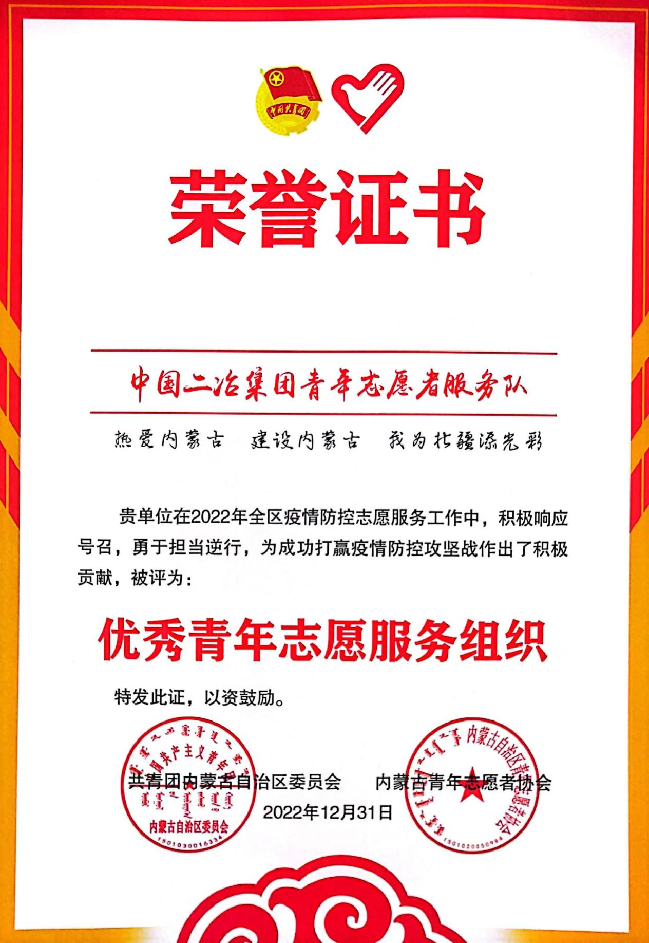 榮獲內(nèi)蒙古“優(yōu)秀青年志愿服務(wù)組織”