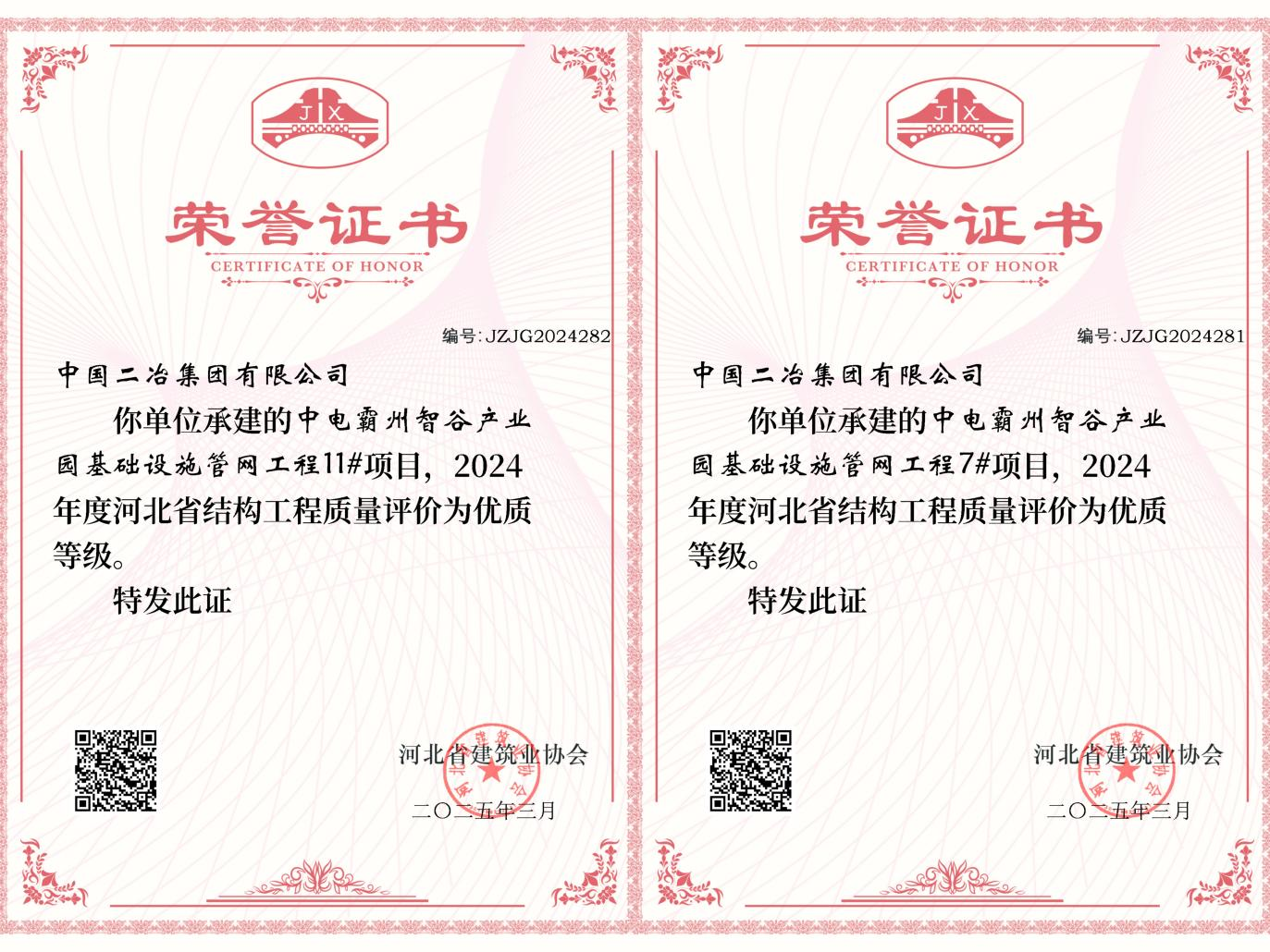 近日,中國二冶霸州中電智谷項目7#、11#樓獲評2024年度河北省優(yōu)質(zhì)結(jié)構(gòu)工程。