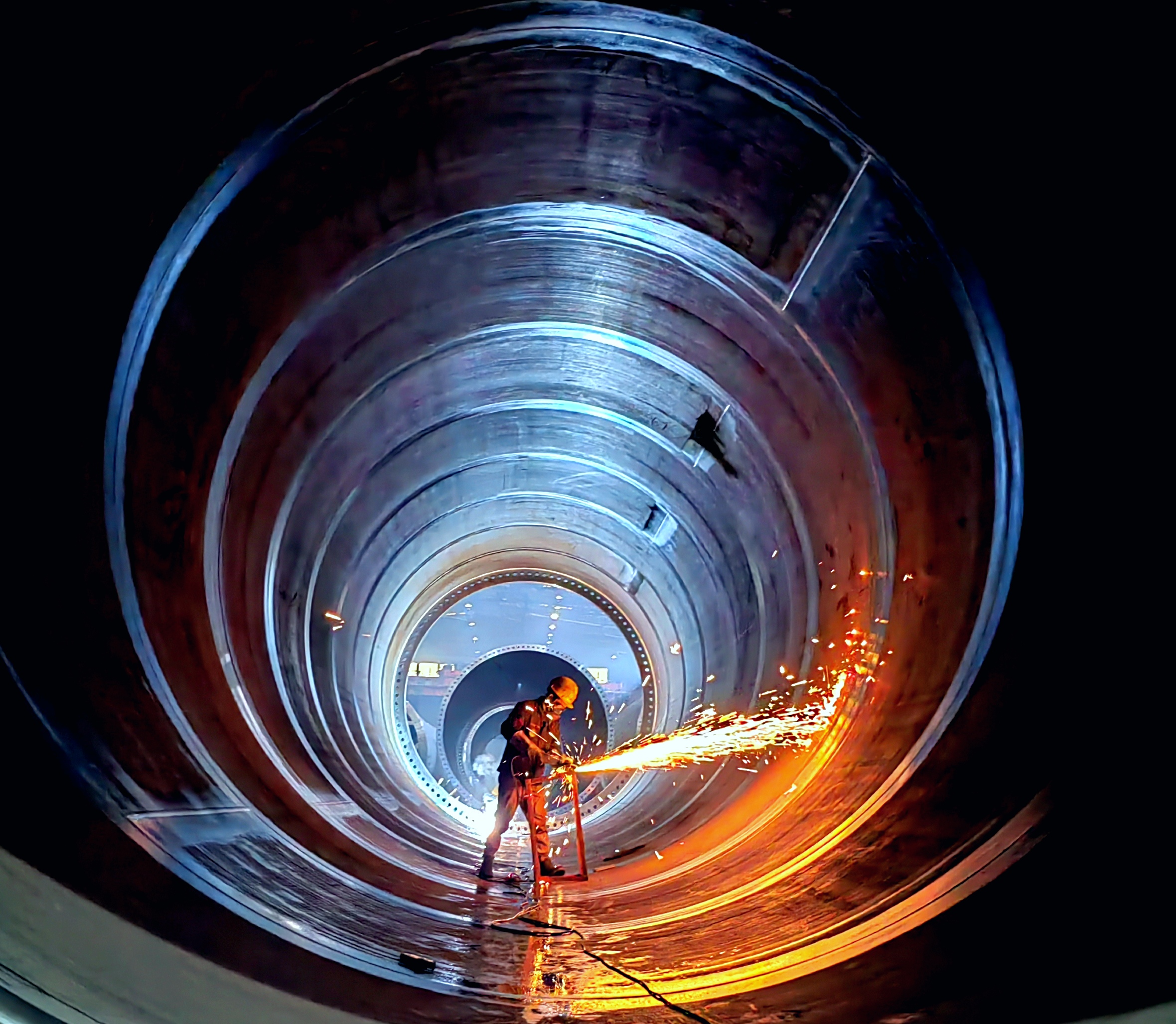 在中國(guó)二冶包頭鋁業(yè)達(dá)茂旗120萬(wàn)千瓦風(fēng)電塔筒制作現(xiàn)場(chǎng),工人們正熱火朝天地生產(chǎn)趕工,不時(shí)傳來(lái)的機(jī)器轟鳴聲、工人呼喊聲、設(shè)備運(yùn)轉(zhuǎn)聲,成為企業(yè)鉚足干勁開(kāi)新局的生動(dòng)寫(xiě)照。