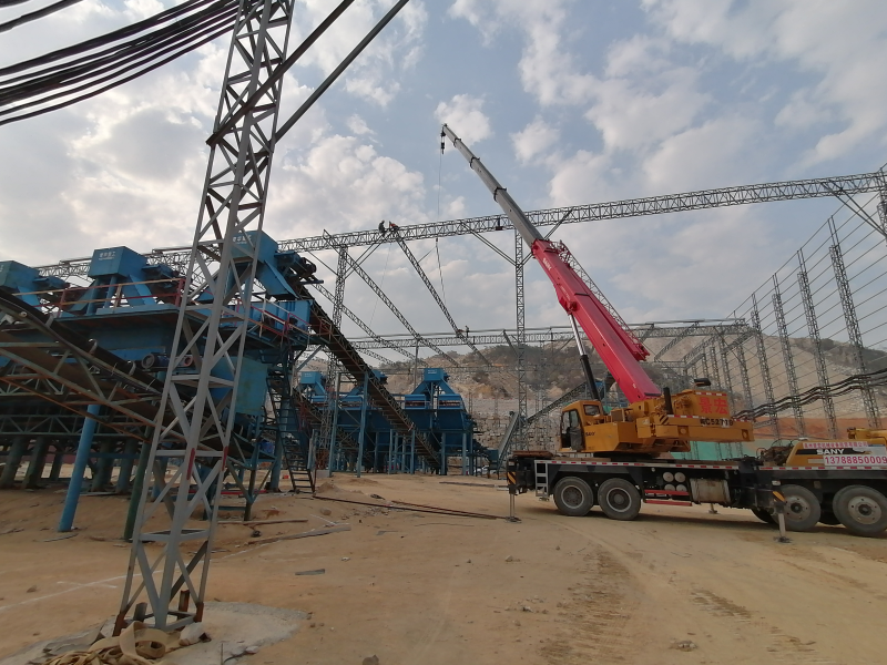 當前,該項目全面掀起施工大干施工熱潮,礦區(qū)內(nèi)房屋、墳?zāi)沟恼鬟w工作已經(jīng)完成,林地已批復(fù);機制砂生產(chǎn)設(shè)備已安裝完畢、單機調(diào)試已完成,正在進行聯(lián)合試車,建筑面積約5萬平的鋼結(jié)構(gòu)廠房完成90%;礦區(qū)內(nèi)主干道混凝土路面澆筑、道路綠化、亮化均已完成;礦區(qū)內(nèi)基建削頂,土石方剝離已經(jīng)完成90%;生活用房、辦公用房場平工作已完成,即將開工建設(shè)。