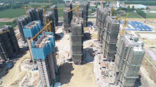 目前為止,李鄉(xiāng)一期(AB地塊)建設(shè)項(xiàng)目二次砌筑完成95%,外墻抹灰完成60%,內(nèi)墻抹灰完成50%,窗框完成100%,煙道完成95%,地庫(kù)頂板防水、虹吸排水、土方回填完成50%。