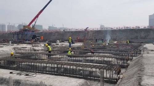 5月14日,C區(qū)的7臺塔吊成功安裝后,也加入了“大干二季度”勞動競賽的參賽隊伍。完成了3#樓負(fù)一層、6#和8#樓負(fù)二層澆筑、10#樓筏板澆筑、13#樓筏板澆筑任務(wù),16#、19#樓基礎(chǔ)鋼筋綁扎正在有序推進。