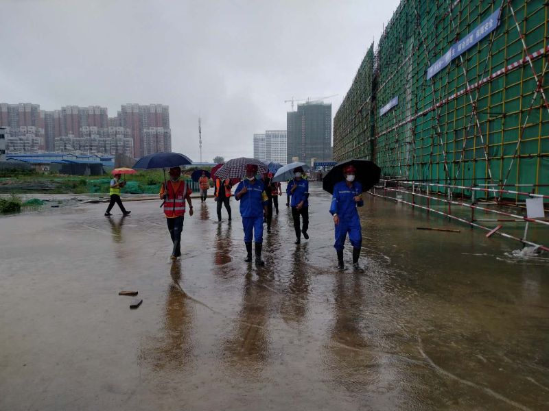 項目部提前編制防雨防汛方案并做好防范應(yīng)急措施,成立防汛小組,24小時不間斷進(jìn)行巡查,對臨電、屋頂、地下室、基坑、排水溝重點檢查,做到發(fā)現(xiàn)問題立即解決。組織施工單位對負(fù)責(zé)區(qū)域進(jìn)行不間斷抽水工作。