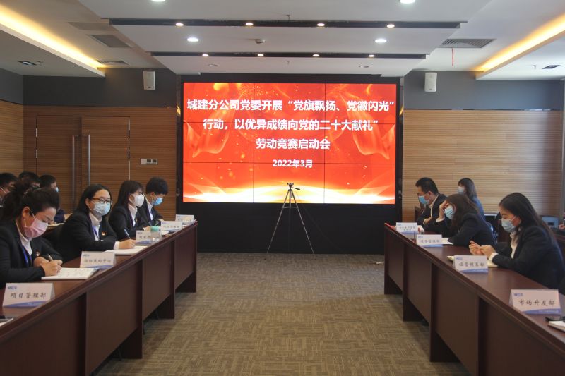 擊鼓催征,號角聲聲;不負春光,奮進新征程。3月4日,城建分公司順利召開“黨旗飄揚、黨徽閃光”行動暨“黨建引領(lǐng)、聚力攻堅,建設(shè)人民滿意工程,確保完成全年任務(wù)目標,以優(yōu)異成績向黨的二十大獻禮”競賽啟動會。該分公司總經(jīng)理李仲提出要求,分公司副總經(jīng)理劉廣文宣讀競賽方案,分公司副總經(jīng)理張翼鵬主持會議。