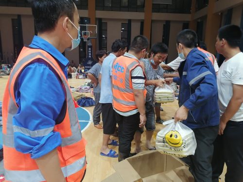 “中冶藍(lán)”為臨時安置點人員送上熱乎飯菜