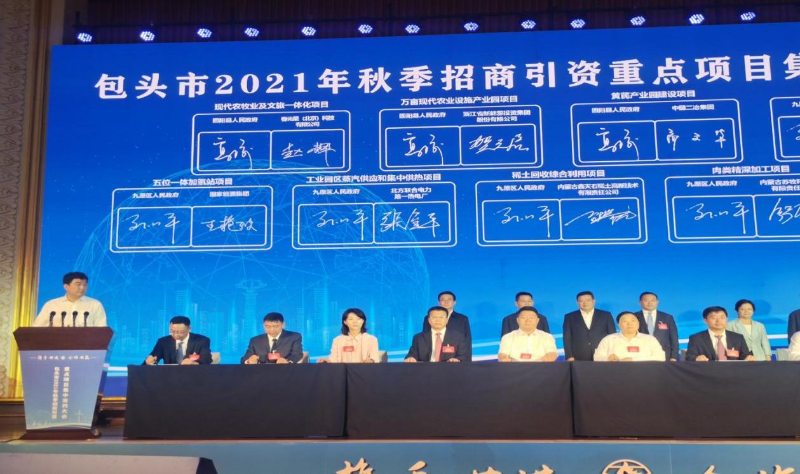 本次集中簽約項目共 45 個,計劃總投資 1160 億元,涉及 14 個產業(yè)領域。簽約大會由中共包頭市委員會、包頭市人民政府主辦。本次大會簽約項目主要集中在綠色低碳領域。通過現(xiàn)場簽約與網絡簽約相結合的模式。其中,現(xiàn)場簽約項目共26個、網絡視頻簽約項目共19個,共簽訂合作項目45個,簽約項目中涉及世界500強企業(yè)6個、中國500強企業(yè)4個、中國民營500強企業(yè)2個。計劃總投資 1160億元,助力綠色低碳環(huán)保循環(huán)經濟持續(xù)發(fā)展。